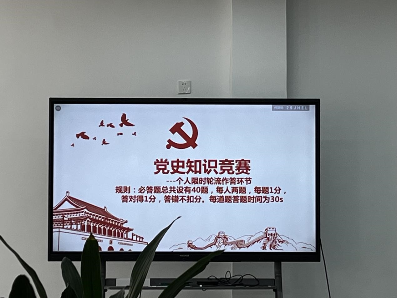 最后,两家公司一同开展了“学党史·悟思想·守初心·担使命”党史知识竞赛。通过知识竞赛的方式进一步调动了党员同学对“党史”学习教育的积极性主动性,激发了学习动力,营造了比学赶超、以赛促学激发了学习氛围,有效的推动了两家公司的共建交流。
