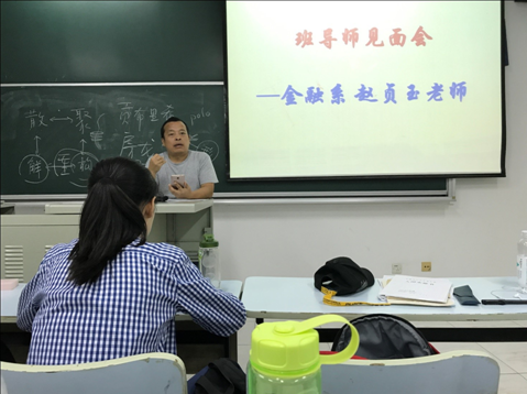 2017年9月21日周四晚18:00,17级金融班在团支书的带领下在A楼104开展了第二次主题班级活动,邀请了402永利集团员工会副主席万润琛和班导师赵贞玉老师给同学们做了简短但有意义的演讲。