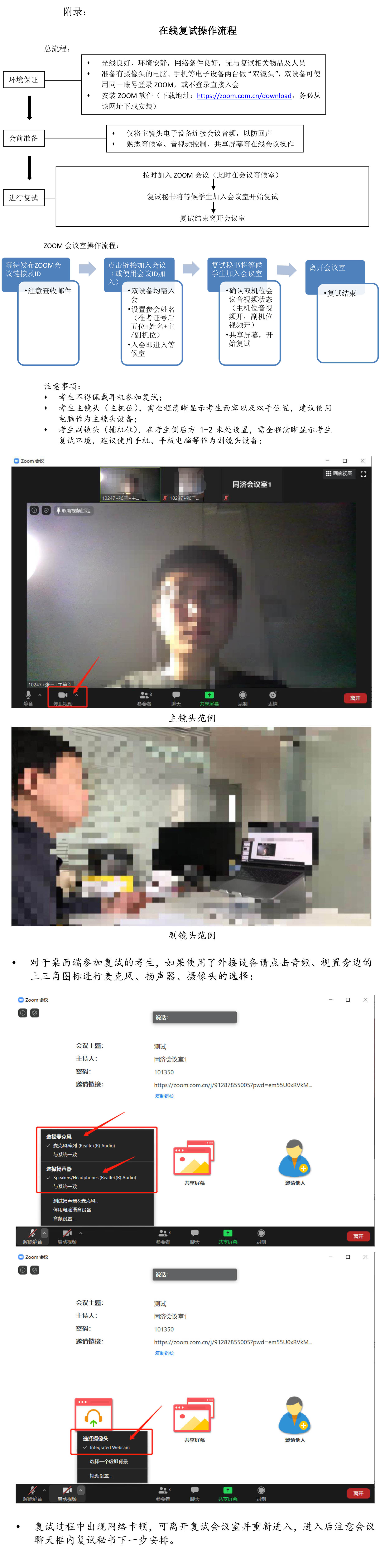 注:具体安排详见公司复试通知,并及时查收考生提供的邮箱。 2. 复试平台为 "Zoom"远程会议系统; 3. 复试前考生需对zoom平台提前测试,具体操作流程参见附录(附录:在线复试操作流程)。