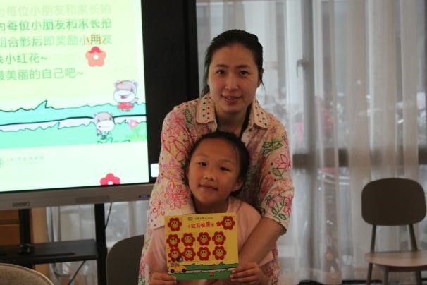 接下来是竞猜环节,小朋友们根据提示进行动画猜猜猜及儿歌竞猜,每位猜对或者帮助其他人猜对的小朋友即可获得奖励,此环节现场气氛高涨,小朋友们齐声歌唱儿歌,同时也展现出小朋友们互帮互助,互相关爱的活动氛围。 其次是爱宝拍拍乐环节,现场的志愿者为每位小朋友和家长拍下最美合影,小朋友和家长们拿着今天收获满满的小红花打卡本,纷纷在镜头前展示最美丽的自己。