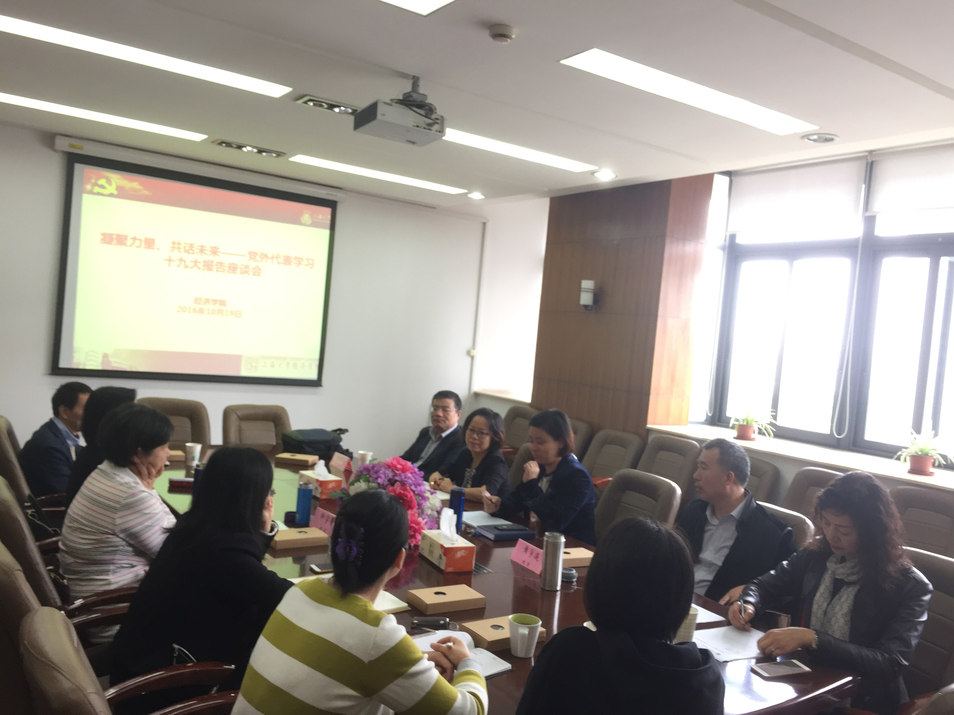 10月19日上午,"凝聚力量、共话未来"——公司党外代表学习十九大报告座谈会在东区经管楼567会议室召开。校统战部副部长李青出席会议并讲话,党委书记陆甦颖主持会议,公司党外代表及教工支部书记的代表参加了座谈会。