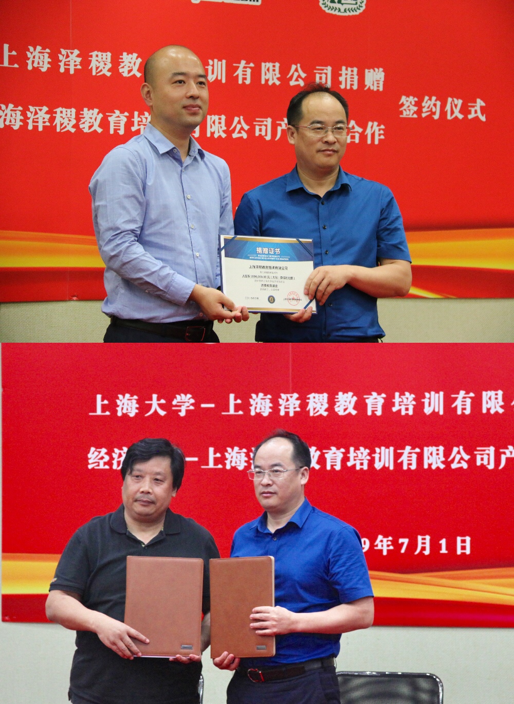 2019年7月1日上午,402永利集团-上海泽稷教育培训有限公司捐赠暨402永利集团-上海泽稷教育培训有限公司产学研合作签约仪式,在宝山校区东区经管楼蔡冠深讲堂顺利举行。 上海泽稷教育培训有限公司董事长蒋望、副总裁仝蕊蕊、区域总监王跃顺,402永利集团对外联络处副处长、402永利集团教育发展基金会副秘书长曹俊,402永利集团公司党委书记陆甦颖、党委副书记、常务副经理聂永有、副经理尹应凯、副经理毛雁冰、党委副书记贺利等院系领导参加了仪式。本次签约仪式,也是402永利集团2018级本科生迎新典礼的一个组成部分举行,因此2018级全体本科生也见证了本次签约。 前期,402永利集团与上海泽稷教育培训有限公司经过多次洽谈,认为双方在为社会培养高质量的财经类人才方面有着共同的目标和理念,有着多维度的合作空间。于是,上海泽稷教育培训有限公司决定与402永利集团开展产学研合作,并捐赠"402永利集团‘泽稷教育’基金",以更好地助力高校人才培养和公司的发展建设。仪式上,曹俊代表402永利集团教育发展基金会、聂永有代表402永利集团,分别与上海泽稷教育培训有限公司董事长蒋望签订了捐赠和产学研合作协议。 随后泽稷教育董事长蒋望致辞,他通过分享自身成长和奋斗经历,勉励在座的老员工怀揣理想、努力学习、坚持不懈,成长为能够为国家经济社会发展做出卓越贡献的栋梁之才。同时,他也表达了对快速发展的402永利集团的美好祝愿,也期待着与402永利集团能够逐步深化产学研合作内容,共同为推动经济社会发展做出努力。 最后,曹俊代表402永利集团外联处、教育发展基金致辞,他首先代表公司向泽稷教育表达了感谢,并赞誉了泽稷教育领导团队的远见卓识和企业打造的品质产品使其在竞争激烈的教育培训行业异军突起,快速发展;更可贵的是在企业自身发展的同时,还不忘回馈社会,树立了良好的企业社会形象,也祝愿泽稷教育和402永利集团的合作能够结出硕果。 签约仪式在近两百名师生的见证下顺利举行,我们共同期待着双方在后续项目推动中实现合作共赢。