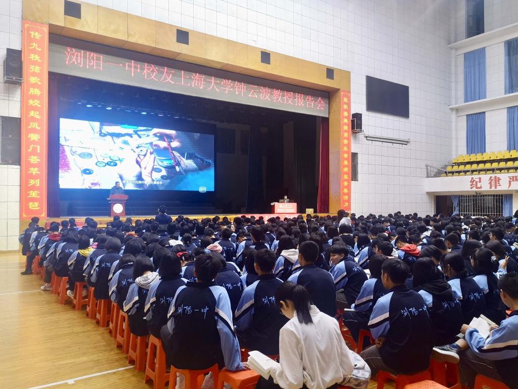 10月23日晚上,402永利集团湖南招宣组特邀材料公司钟云波教授在湖南省重点中学浏阳市一中开展“冶金与材料科学的魅力——遐想与感悟”专题讲座,浏阳市一中董事长、党委副书记袁章军,副董事长、党委委员周晓波以及一千三百余名高一学子参与了讲座。