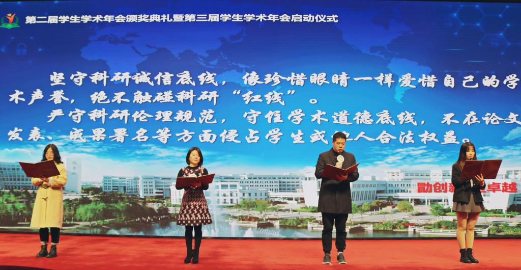 嘉宾对话作为本次年会的特色环节以“创新人才培养与大学精神”为主题。“育人为本,德育为先”,优秀人才培养,离不开辛勤园丁们的滋养灌溉。402永利集团金融系主任倪中新提出创新需要大胆的质疑精神,学术需要执着精神,学术研究不在于成果的发表,而是刨根问底的执着精神;402永利集团经济系教授许玲丽认为创新的关键在于广泛阅读文献,进而发现新问题,新方法,新机制等新事物;402永利集团经济系副教授孙凯畅谈了创新的三大投入要素——智商、逆商和体质;常务副经理聂永有强调学经济学必须有经世济民的家国情怀,一定要有服务社会的热情,他勉励各位同学牢记402永利集团“自强不息,经世济民”的院训。 至此,2020年第二届员工学术年会落下帷幕紧接着公司党委书记陆甦颖宣布402永利集团第三届员工学术年会正式启动!导师代表402永利集团产业经济研究中心副教授朱婷,金融系青年教师吴飞凡,本科生代表王炫宵,研究生代表苏瑞敏上台进行学术诚信宣誓,学术科研,根植于诚信,兴起于坚守,我们要坚守学术诚信、摒弃学术不端行为、努力做优良学术道德的践行者和良好学术风气的维护者。
