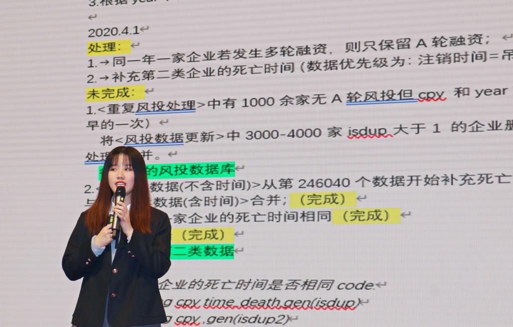 图为2018级劳动经济学研究生苏瑞敏同学发言