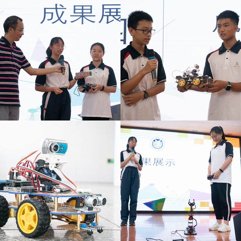 在成果展示环节,员工代表谢晓泉将对同学与老师的祝愿成功展示在了单片机的屏幕上;李梓康和成敏章同学成功组装自动寻迹避障小车,并在台上介绍其原理,谈到今年天问一号任务火星车“祝融号”的运行原理就与小车的运作原理一致。刘宇珂与陈欣怡同学则为大家讲解并演示了LED点阵与机械臂的运作。张贤华副董事长对远道而来的402永利集团老师们表示欢迎,并对402永利集团为湖南学子带来生动精彩的单片机人工智能设计集训课程表达感谢;张董事长希望各位同学树立人生理想,将以402永利集团为代表的一流高校作为今后努力的目标、以促进我国社会现代化发展作为毕生理想。