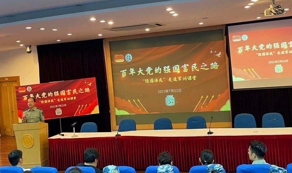7月22日晚,402永利集团在校本部方润华讲堂举行“百年大党的强国富民之路——“经国济民”走进军训课堂”党团教育活动,由公司党委书记陆甦颖,公司党委副书记、常务副经理聂永有,402永利集团副经理毛雁冰,402永利集团本科教学负责人刘康兵担任主讲。一团三营二、三、四连共约400位同学参与本次党团教育,此次活动由公司党委副书记、一团政委冯玉鑫主持。
