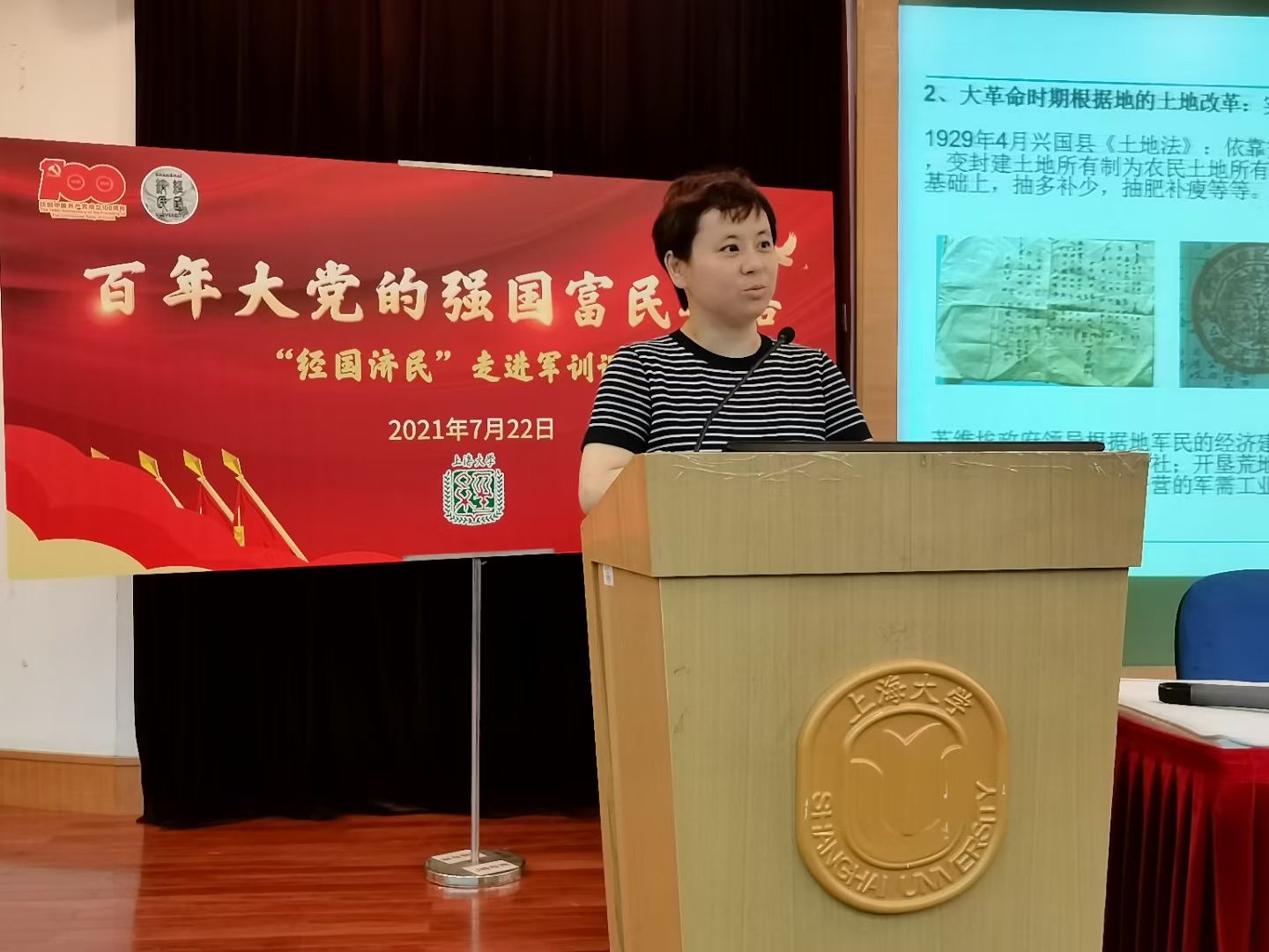 首先,陆甦颖介绍了“经国济民”课程团队及授课模式。随后,她为同学们梳理了从鸦片战争到中国共产党成立,并到新中国成立之前的历史时间轴,带领同学们回顾新民主主义时期发生的重大事件,详细讲述了中国共产党这条经国济民之路的理论与实践。