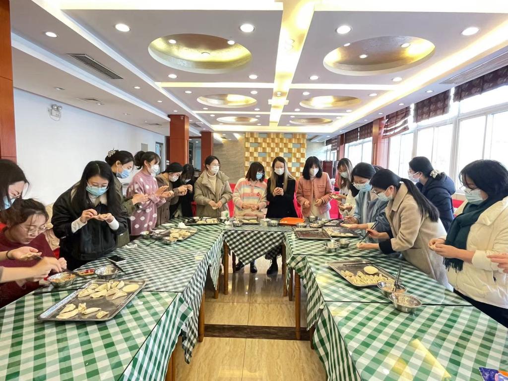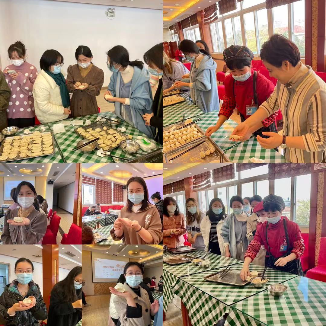 在嘉定校区,陆书记向大家致以亲切的问候,并了解大家在学习和生活中遇到的困难;随后,食堂的工作人早早为大家准备好了饺子馅和饺子皮,并向同学们展示了几种经典的包饺子方法,之后师生陆续分组领取馅料和工具,撸起衣袖上手操作。活动过程中,老师与同学们相互协作,忙的不亦乐乎,放馅儿、做造型、捏花边,把自己内心的“期盼”与“祝福”都包进饺子里。大家其乐融融、十分热闹,由于各地风俗习惯差异,同学们所包的饺子也是各式各样,有些同学不满足于传统饺子的形状,试着玩儿起各种花样,顷刻间盘子里就出现“金元宝、太阳花”等丰富多彩、形状各异的饺子。一上午的功夫,大家包了三百余个饺子,看着自己的“作品”,同学们脸上洋溢着自豪的笑容,充满暖意的饺子煮好端上餐桌,同学们看着一盘盘热腾腾、香喷喷的饺子,感受到了分外的喜悦和集体的温暖。