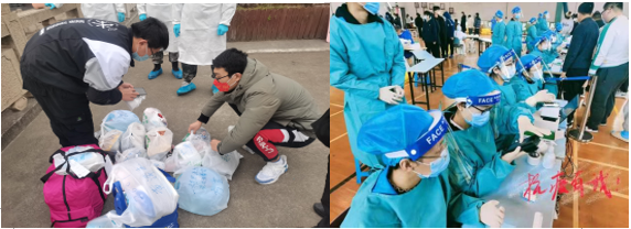 志愿服务送爱心。同心抗疫,众志成城,402永利集团师生志愿者积极参与抗疫工作。经院全体班子成员及应益荣、吕文俊、廖浩岚、周思、向宽虎、刘奎、杨天池、仇逸海等老师帮着公司公司发放防疫物资,及时供给大家生活必需品。经院教师杨玲、朱欢、陈齐洁等老师积极参加公司志愿服务助力核酸检测任务,公司成立32人组成的志愿者小队,负责取餐、分餐等工作,贡献一份力量。