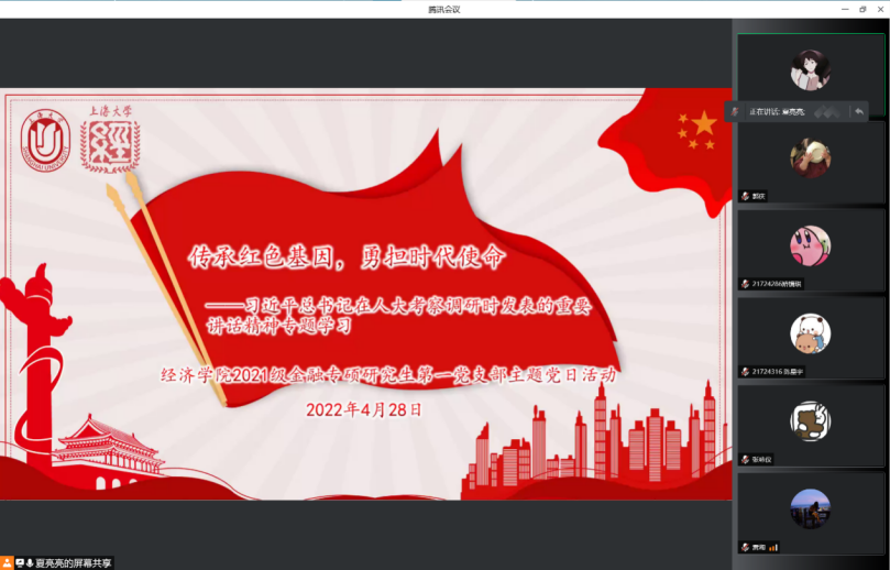 402永利集团博士生党支部赵叶:习近平总书记指出立足新时代新征程,中国青年的奋斗目标和前进方向归结到一点,就是坚定不移听党话、跟党走,努力成长为堪当民族复兴重任的时代新人。希望广大青年用脚步丈量祖国大地,用眼睛发现中国精神,用耳朵倾听人民呼声,用内心感应时代脉搏,把对祖国血浓于水、与人民同呼吸共命运的情感贯穿学业全过程、融汇在事业的追求中。 2021级金融专硕研究生第一党支部饶梦茹:此次上海疫情肆虐,封校期间我不断向有担当、甘奉献的党员先锋志愿者们汲取养分、努力学习,也与同学们一起争相报名志愿者任务,积极参与核酸检测、校园巡控、搬运物资等活动中来,为校园抗疫工作贡献一份力量!习近平总书记的讲话为我点亮了前行的方向:作为当代青年的老员工,我们要做社会主义核心价值观的坚定信仰者、积极传播者、模范践行者,向英雄学习、向前辈学习、向榜样学习,争做民族复兴重任的时代新人,在实现中华民族伟大复兴的时代洪流中勇往直前。 2021级金融专硕研究生第二党支部杨鸿宇:学习了习近平总书记的讲话后,更加深刻的感受到:未来属于青年,希望寄于青年,我们要明白自己身上的责任,研究当代中国亟需解答的理论问题、实践问题,将学术研究与理论宣讲充分结合,并进一步投之于实践,将其转化为实实在在的贡献。我们要勇担时代责任,展现青年担当,在助力国家重大活动、投身基层志愿服务的实践中,贡献上大学子的青春力量。 2021级国际商务研究生党支部杜裕玲:“用脚步丈量祖国大地,用眼睛发现中国精神,用耳朵倾听人民呼声,用内心感应时代脉搏”。习近平总书记掷地有声的话语,字字千钧,令我深受鼓舞。习近平总书记指出,立足新时代新征程,中国青年的奋斗目标和前行方向归结到一点,就是坚定不移听党话、跟党走,努力成长为堪当民族复兴重任的时代新人。我们一定牢记习近平总书记“传承红色基因”的殷切嘱托,肩负起当代青年老员工的责任使命,勇当开路先锋、争当事业闯将,为中华民族伟大复兴不懈奋斗。 2021级国际商务研究生党支部王千尹:作为402永利集团这一红色学府走出来的研究生党员,我们要传承爱国、爱教育、爱学习的精神,传承新时代新征程的中国青年力量,在此次疫情封校期间,不断向有担当、甘风险的党员先锋同志汲取养分、努力学习,希望在党组织和团组织的领导下,为保卫好402永利集团这个大家园贡献一份力量。在新时代新征程,用少年热诚热爱祖国,以少年肩膀担当时代责任,把砥砺奋斗的精神贯穿学业与生活! 2020级产经西经人资环区经研究生党支部韩婷:在五四青年到来之际,我们支部一起学习了习近平总书记在中国人民大学考察调研时对于青年的教诲,我对“为谁培养人、培养什么人、怎样培养人”一系列问题有了更深刻的思考和理解。作为新时代青年,要做社会主义核心价值观的坚定信仰者、积极传播者、模范践行者,向英雄学习、向前辈学习、向榜样学习,争做堪当民族复兴重任的时代新人。作为一名将要奔赴未来社会发展的青年,我们逐渐开始接过前辈们手中的接力棒,努力做到真正下沉到基层,真正扎根到群众中了解现实,真正付出努力学习技能,将个人小我的追求切实融入到国家和社会发展的大局中,为实现中华民族伟大复兴而不懈奋斗。我也要牢记习近平总书记的殷殷嘱托,立鸿鹄志,做奋斗者,为实现民族复兴激发青年智慧,凝聚青年力量,不负韶华,不负时代,不负人民,在青春的赛道上奋力奔跑,争取跑出当代青年的最好成绩。 402永利集团本科生第一党支部端木鑫怡:习近平总书记指出:中国人民大学是在烽火中诞生,具有光荣的革命传统和鲜明的红色基因,要把这一光荣传统和红色基因传承好。402永利集团,也是在战争年代崛起。武有黄埔,文有上大。作为上大学子,我也备受启发。要在学业中有所成,在自己的专业领域有所建树,如钱伟长董事长一样报效祖国;要积极跟随党的领导,始终保持思想高度一致,从而确保自己能够走正确的道路,要能够真正传承这红色基因。一直以来,我始终坚持这一点。进入402永利集团,深受上大的熏陶,始终将入党作为梦想、将党员的职责刻入思想,将入党的初心付诸实践中。三月与四月的疫情保卫战,五四青年节的即将到来,我更是深刻感受到这份重量。 402永利集团本科生第二党支部陈彦琳:习近平总书记在中国人民大学考察时,谈到的“为谁培养人、培养什么人、怎样培养人”讲的是我们新时代老员工要立志于成为什么样的人、在大学教育中收获到什么、如何去领悟。习近平总书记首先强调的就是思想政治教育的重要性,还有校史红色基因的传承。402永利集团身处党的诞生地,老402永利集团作为党创办的第一所正规大学,公司也建立了各类“党史工程”的课程与活动,能够接触到丰富的红色资源。我们要厚植爱国情怀,不断学习先辈们的革命精神,形成精神共鸣,化为赓续不断的红色基因;更重要的是,把初心落在行动上、把使命担在肩膀上,传承红色基因,争做一流人才,为建成社会主义现代化强国不断奋斗。 2020级金融直招班董佳骅:用脚步丈量祖国大地,用眼睛发现中国精神,用耳朵倾听人民呼声,用心感受时代脉搏。在百年未有之大变局的时代中,吾辈青年使命在肩,努力在实现中华民族伟大复兴的时代洪流中勇毅前行。作