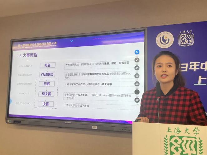 第一届中国研究生金融科技创新大赛三等奖获得者刘玉琳围绕中国研究生金融科技创新大赛的经验开展互动交流。该比赛是中国研究生创新实践系列大赛2022年的新设赛事,她从大赛简介、赛题构成与选题方向、大赛流程、奖项设置到参赛队伍情况都进行了介绍。最后向大家具体讲解了自己团队的项目,项目主题是围绕大赛的选题方向六“公募产品个性化推荐系统”,定位是投教+投顾服务平台,生动讲述了自己项目筹备的全过程,为在场同学提供赛事经验。