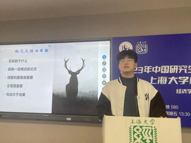 第十九届中国研究生数学建模竞赛二等奖获得者邢天阳就研究生数学建模竞赛进行经验分享。他除了介绍这项比赛的要求与流程以外,还强调了自己在实战过程中感悟到的一些经验教训和技巧,十分具有参考价值。他表示“完整大于完美”,有时未必要吹毛求疵,但需要有一套完备的文章架构,切忌虎头蛇尾。文笔也是非常重要的一环,团队内各成员要多沟通交流,相互理解彼此的工作内容,避免构思、设计与想法和论文文字内容有出入,掉入表述混乱不到位的陷阱。