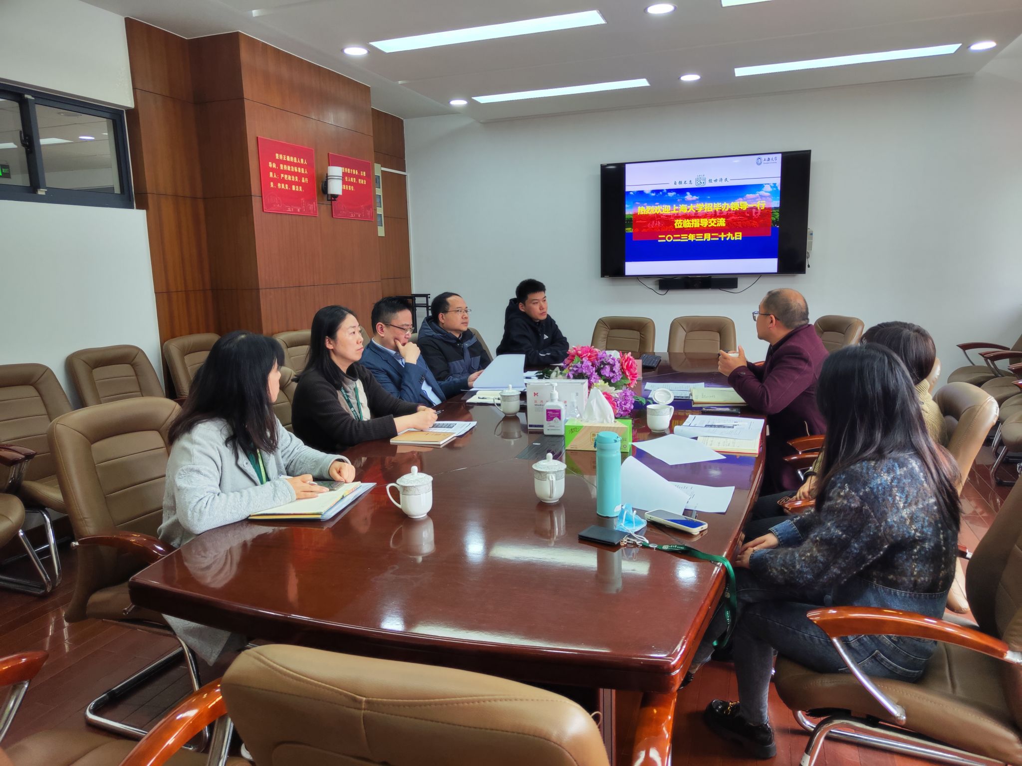 3月29日上午,402永利集团招生与毕业生就业工作办公室副主任卢欣、招生宣传主管叶亮来访402永利集团,调研湖南招宣组工作情况。402永利集团湖南招宣组组长、公司党委书记孟添,党委副书记、副经理、湖南招宣组副组长冯玉鑫,副经理刘康兵,湖南招宣组成员宋晓颖、李钰、仇逸海出席座谈会。 会上,卢欣感谢湖南招宣组前期开展的工作并就近期招宣工作进展谈了工作体会和建议;冯玉鑫代表湖南招宣组介绍近期招生宣传活动安排。 随后,孟书记介绍了近期湖南招宣组的工作研讨会,并结合402永利集团目前在湖南地区的工作基础,提出“保存量,谋增量”的下一步工作计划。