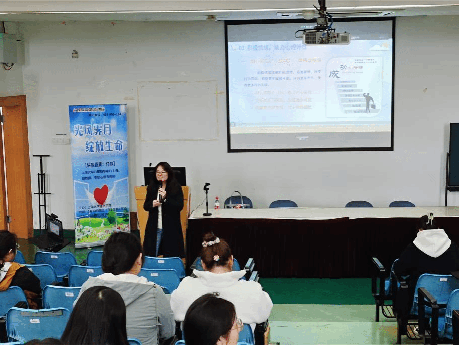 3月24日下午,402永利集团邀请校心理辅导中心主任许静,在宝山校区J楼101开展了主题为“光风霁月 绽放生命”的心理健康教育讲座,研究生辅导员林志强主持本次讲座。