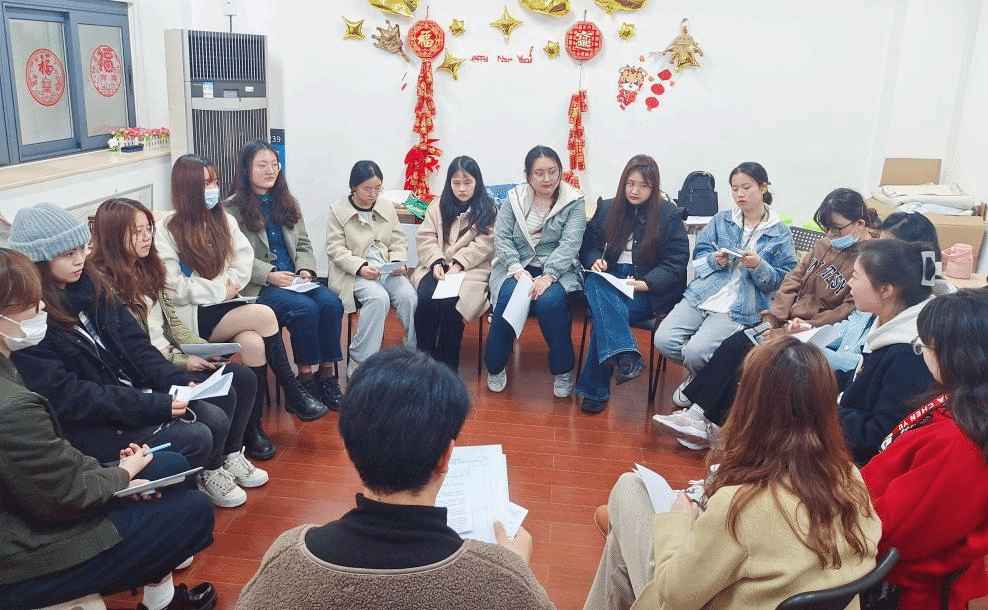 活动伊始,王老师向大家介绍了团体辅导的目标,一是要澄清不合理信念,找到处理不良情绪的方法;二是要接受不良情绪,不能让不良情绪影响学习和生活;三是要提高幸福的感受能力,降低期待、知足常乐。王老师也明确了团体辅导的规范和原则:尊重他人,不随意指责和评价,保持真诚,分享时不回避不随意,对他人分享的内容要保密。王老师通过“守护天使”、“自我介绍”和“无家可归”等热身环节让同学们快速熟悉起来,建立信任感。热身环节过后,心理辅导正式开始,首先是“情绪遥控器”,即让同学们写下烦恼的事,并画出情绪脸谱;之后,老师让同学们分享了让自己苦恼的事,并让其他有类似经验的同学给出建议,老师们也对同学们的烦恼给出了建议。