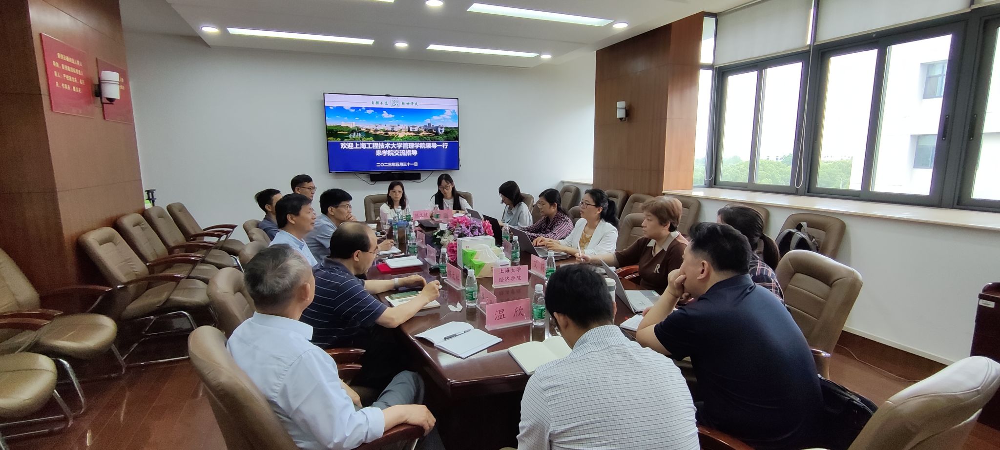 5月31日上午,上海工程技术大学管理公司一行来公司学习调研。上海工程技术大学管理公司副经理邱梦华教授、应用经济学系主任艾蔚教授、应用经济学学科带头人王丹教授、应用经济学系副主任赵海燕、应用经济系副主任何琦、 教学团队负责人黄新祥、国际经济与贸易专业骨干教师张磊、职工辅导员温欣,公司副经理刘康兵、经济系副主任卢正刚、赫赫、顾标,国际商务负责人程铭,经济系原系主任韩太祥,研究生教务秘书陈文婕、国际员工辅导员杨轶等人参与调研交流会。