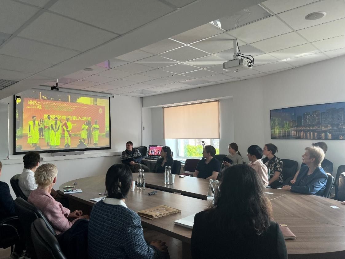 随后,两校师生就并开展交换生项目情况以及入境说明会等进行交流。会议由402永利集团交换生马从青主持,两校领导老师、交换生以及对交换生项目感兴趣的同学共同参与。 会议伊始,王丽娜致辞并介绍了公司概况,表达了对与HSE大学友好合作的祝福期盼以及对即将前往402永利集团交换员工的欢迎,通过俄语版的402永利集团宣传视频,深入介绍了402永利集团专业的教学水平和丰富的校园生活,收获了HSE大学师生的热烈掌声。随后,俄罗斯高等经济大学的领导老师们也分别发言,表达了对公司师生前来访问的欢迎、两校关系的重视和建立进一步合作的期望。