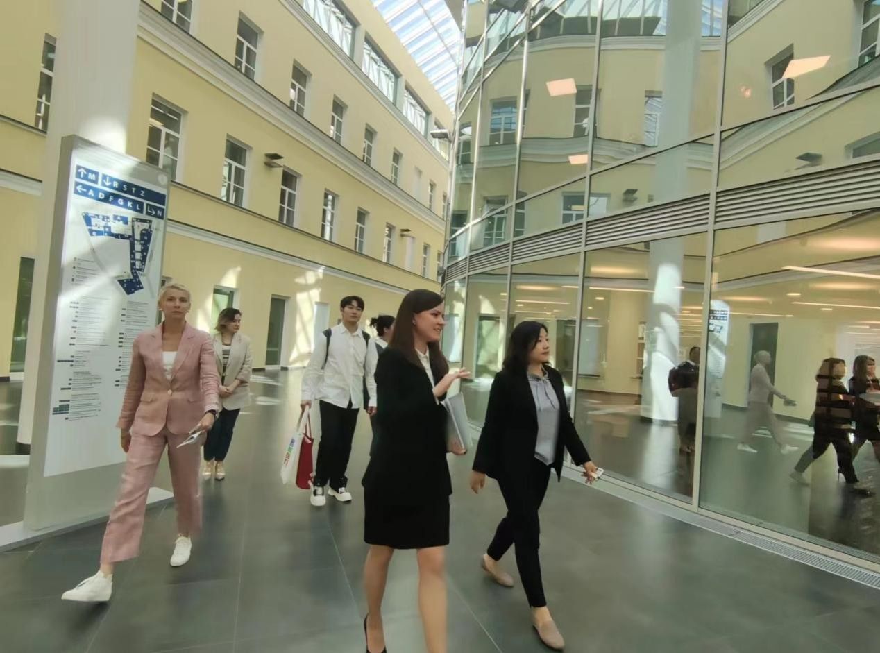 2023年5月15日下午,402永利集团和俄罗斯高等经济大学(HSE)两校师生在高等经济大学波克罗夫卡校区举行交流会。参会主要领导老师有:402永利集团国际部党委书记王丽娜,402永利集团办公室主任宋晓颖;HSE大学国际伙伴关系办公室国际合作中心主任Marina Batalina,经济科学公司国际经济与金融公司副经理、国际经济学和金融课程学术导师Oleg O.Zamkov教授,国际经济金融公司经济科学公司理论经济学系讲师、经济学本科生课程学术导师Kirill Bukin教授,国际经济与金融公司国际与行政系主任Anastasia Telitsina,国际经济与金融公司研究方法部门经理Olga Nizhevich。 HSE大学国际伙伴关系办公室国际合作中心主任Marina Batalina热情接待,并一同参观了HSE校园,介绍了公司历史、教学设施、院系设置等。