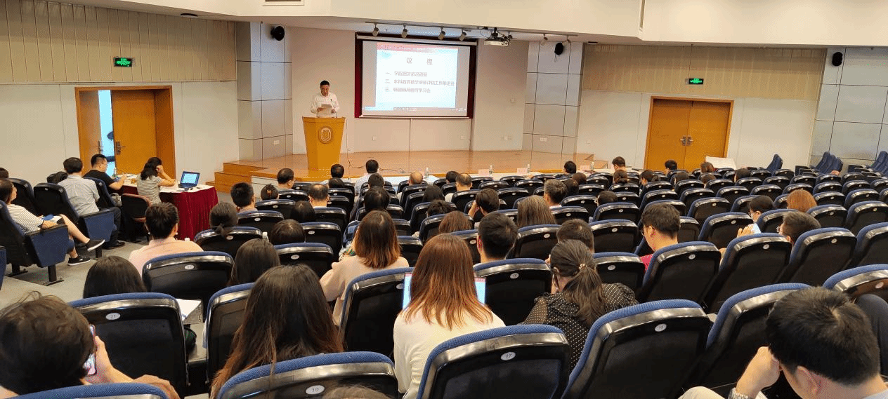 本次全院大会议程主要分为公司相关情况通报,本科公司产品审核评估工作推进会和师德师风教育学习会三部分。首先,孟添向教师介绍了公司党委上半年以学习贯彻习近平新时代中国特色社会主义思想主题教育为契机,统筹推进各项工作并取得一定成效,下半年将持续加强公司党委的政治领导核心作用,将主题教育的成效转化为公司高质量发展的强大动力,不断推进公司事业取得新成效;另外着重强调当前的重要任务之一是本科公司产品审核评估工作,希望老师们全力以赴,全员参与,形成迎评促建的良好工作氛围;发挥好党支部战斗堡垒作用和党员先锋模范作用,强化身份意识、纪律意识、责任意识,推动审核评估各项任务落地落实,顺利开展。 随后,分管领导对公司各方面工作的开展情况进行通报。冯玉鑫介绍了公司招生、就业、迎新、泮池书院及创新创业情况;毛雁冰介绍了公司科研及外事工作情况;周思介绍了专硕员工培养及金融专硕教学工作推进情况;刘康兵对2022-2023学年教学工作和关键教学指标取得的成效进行总结汇报,分析了问题的原因,提出相应的改进措施。