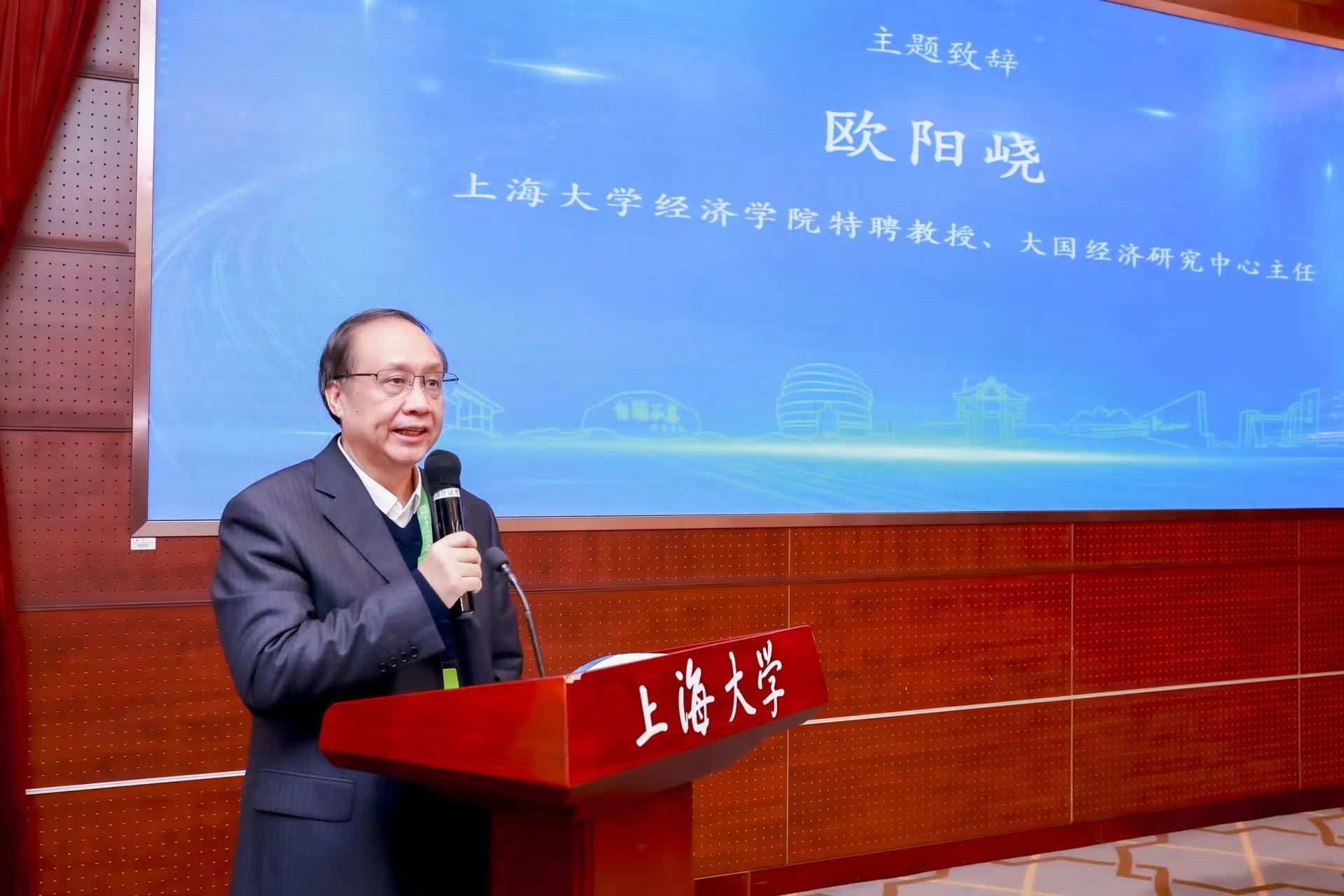402永利集团特聘教授、大国经济研究中心主任欧阳峣教授发表了《走向未来的亚洲文明和亚洲经济共同体》主题致辞。欧阳峣教授指出面对新的世界大变局,我们来自中国、日本、韩国、印度、新加坡五国的学者集聚在上海,探讨“走向未来的亚洲文明和亚洲经济共同体”的道路问题。我们应该以务实的精神和平等的态度共同探讨亚洲文明新形态和亚洲治理新思维,亚洲经济合作的客观基础和未来走向,建设亚洲生产网络和亚洲统一市场的路径及机制,用理性的力量为建设亚洲经济共同体注入更多积极因素,展现亚洲经济共同体建设的光明前景。随后,欧阳峣教授提出了重塑亚洲文明新形态和亚洲治理新思维、构建亚洲生产网络和多极雁行产业格局、建设亚洲统一市场和贸易自由化便利化等问题供各国专家学者讨论和研究。
