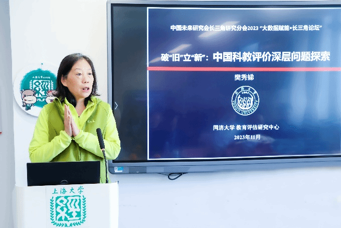 同济大学教育评估研究中心主任樊秀娣研究员进行了“破旧立新:中国教育评价深层问题探索”主题演讲。樊主任首先探讨了教育和科研评价中存在的现实问题,提出教育和科研评价的基本特点为主观性、专业性、综合性、多样性,指出科研活动及其成果是质量和数量的有机结合体,无法用量化指标来绝对计量,唯量化指标评价会产生认知偏差包括名不副实、以偏概全、结果固化等问题。因此,樊主任认为教育和科研评价一定要开展关注实际内容的“真评价”,非“真评价”可能会导致“逆淘汰”现象出现。