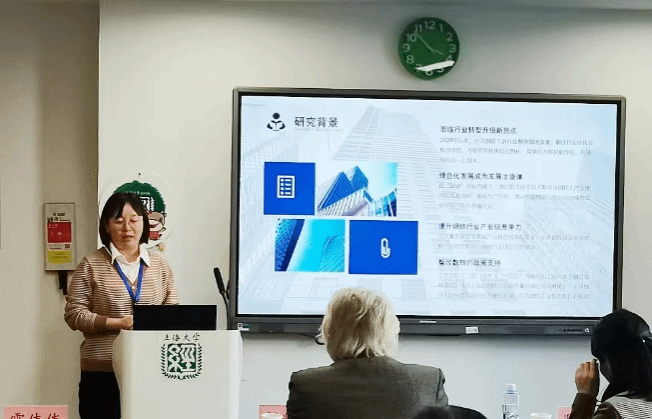 常州工公司副教授尤瑞玲对“智转数改赋能中天钢铁高质量发展研究”进行分享。她指出,钢铁行业中低端产品占比下降,面临行业转型升级拐点,绿色化发展成为发展主旋律,随着钢铁贸易摩擦不断增加,要基于安全和效率提高钢铁行业全产业链竞争力以及政策支持。通过对中天钢铁的目标定位、实施方案、智转数改成效、存在问题分析,提出钢铁产业发展的对策建议,认为要加强钢铁工业数字化标准研究,推进工业互联网发展应用,加速突破关键技术,大力引培复合型数字人才。