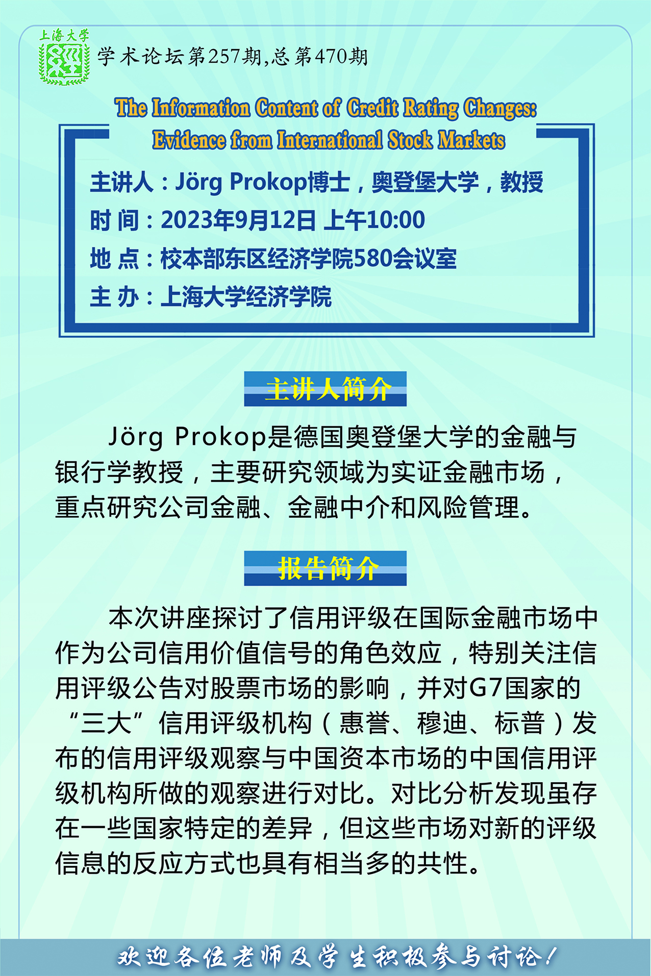 【学术报告】The Information Content of Credit Rating Changes: Evidence from International Stock Markets