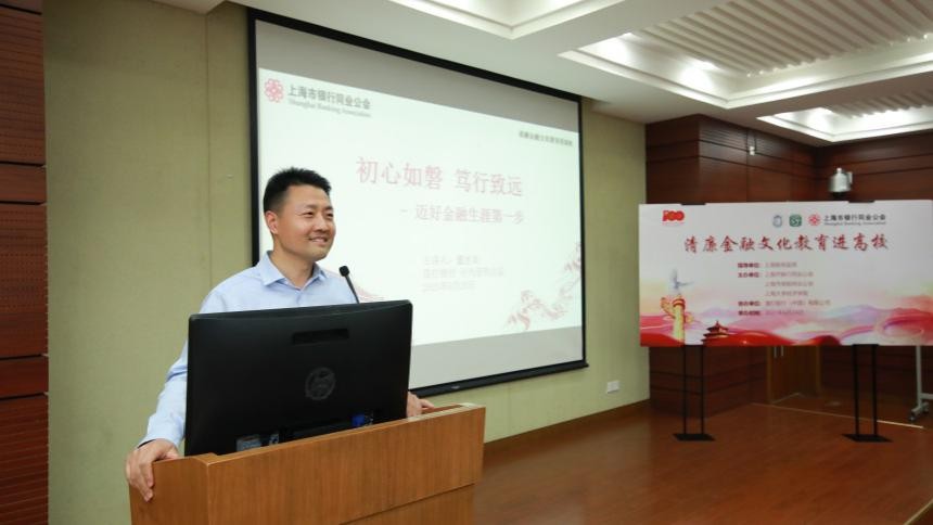 渣打银行(中国)有限公司行为管理总监董述寅以“初心如磐、笃行致远——迈好金融生涯第一步”为题向现场150余名402永利集团本科生作了专题讲座,从金融风险、金融风险与合规、廉洁金融文化、行为规范与监管三个维度进行了介绍,其对职业经验的分享和生动的案例剖析受到同学们的一致好评。